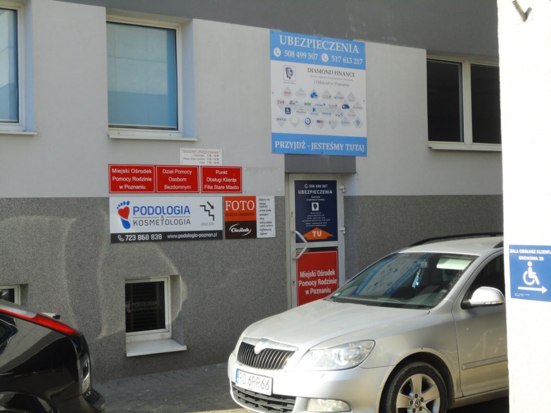 Znajduje się przy wejściu do Wydziału Komunikacji Urzędu Miasta Poznania.